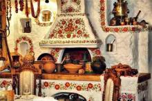 Что мы видим перед собой при входе в избу? Печь, которая служила одновременно и источником тепла, и местом приготовления пищи, и местом для сна, использовалась при лечении от самых различных заболеваний. В некоторых районах в печи мылись и парились. Печь порою олицетворяла все жилище, ее наличие или отсутствие определяло характер постройки (дом без печи – нежилой). Показательна народная этимология слова «изба» из «исътопка» от «топить, истопить». Основная функция печи – приготовление пищи – осмысливалась не только как хозяйственная, но и как сакральная: сырое, неосвоенное, нечистое превращалось в вареное, освоенное, чистое.