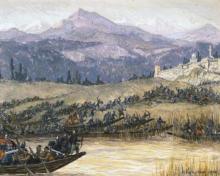 Гой, ПЕРУНЕ!Кочергин Н.М. (1897 – 1974)."Взятие города Бердаа во время похода русских на Каспийское море в 943 – 944 гг."Славься, великий, могучий Перун,Дуб в три охвата, упершийся в Небо!Славные вои твои прорекутТрижы "ура" в честь победы!