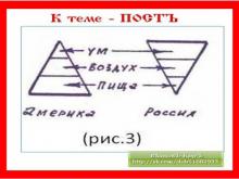 Великий он не потому, что длительный, как у христиан. Они в маслячную неделю должны наесться от пуза, а потом голодать. Великий пост потому, что в эти дни почитают всех Великих Богов и Предков. Почему? Помните треугольники (рис.3): пища, воздух, ум и наоборот? Когда в Великий пост ограничение в питании человек больше думает о Богах и Предках, а раз больше о них думаешь, то и больше сил от них получаешь, которое компенсирует человеку питание продуктами. Как бы сказали йоги: Человек переходит на прановое питание, ограничивая себя в земной пище, получаешь больше Небесной пищи, т.е. энергии, которая необходима для пробуждения твоего организма после времени мары, т.е. после зимы.