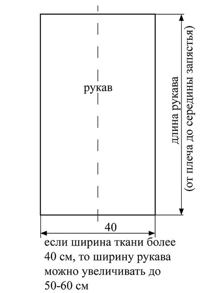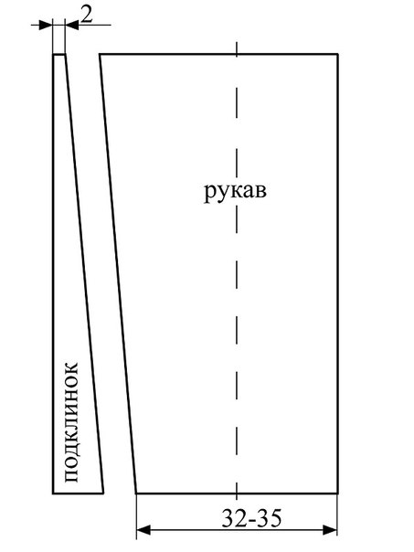 3.Сметать и пришить рукава к станушке, совместив середину сторон станушки серединами пройм рукавов. Проследить, чтобы на рукавах шов с подклинком был спереди.