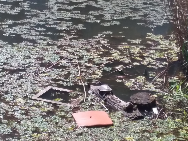 Вот идешь в городе, казалось бы ничего примечательного, водоем, куда стекают сливы теплоэлектростанции, - зажат многоэтажками. Все обыденно и серо на первый взгляд. Просто "кусочек" системы? Нет. Именно здесь притаилось чудо. Вот оно... Большая черепаха, взобралась на открывшийся островок, и нежится в лучах очень жаркого солнца. Как? Откуда? Здесь-то?