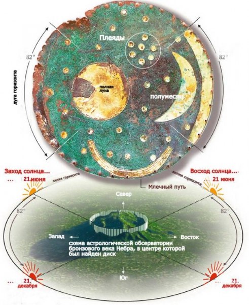 Небесный диск – старейшее конкретное изображение небосвода в мире. «Солнце показывало день и год, это было важно для сельского хозяйства, а луна была необходима для определения нового месяца, – сказал Меллер. – Но лунный календарь короче солнечного на 11 дней.