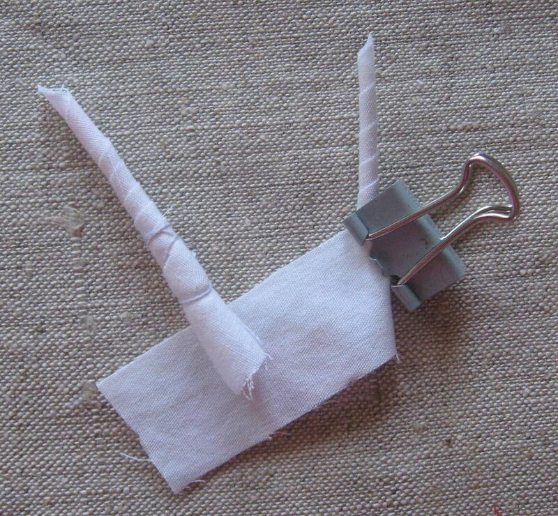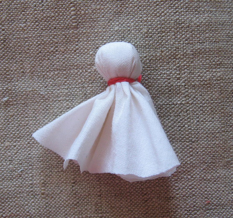 2 В центр белого лоскута помещаем тугой комочек ваты. Голову оформляем не более 1,5 см в диаметре.