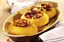 Репу вынуть из духовки. Духовку не выключать. Тонким ножом вырезать из каждого плода середину.Положить внутрь репы начинку. Смазать оставшимся медом и вернуть в духовку на 10 мин.