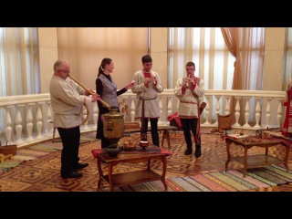 Ребята в желтых азямах (долгополых кафтанах) и в высоких поярковых (тонких войлочных) шляпах собираются на эстраде. И вот льется унылая, переливчатая, грустно вздыхающая русская песня. Кажется, что это поет хор теноров, — поет где-то далеко только одну мелодию без слов. Звуки плачут, вздыхают, стонут...»