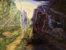 "Два всадника едут, каждый по своей тропе, то два Бога – Белбог и Чернобог. Первого Бога изображали мудрым седобородым старцем, второго – олицетворением зла. Однако славяе почитали их в равной мере.
