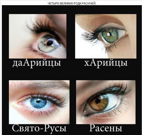 Цвѣтъ глаз зависит отъ таго, какое Солнце свѣтило людям этих Родов на их родных Землях.
