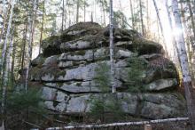На стоящей рядом 12-метровой скале и у ее подножия располагался жертвенник.
