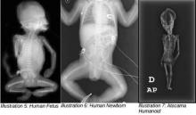 Cлева направо - человеческий зародыш, новорождённый, атакамский гуманоид.