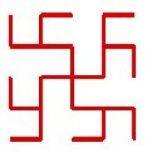 Округлённая. Символизирующая вечность Жизни наших Мудрых Предков в Чертогах Миров Слави и Прави.