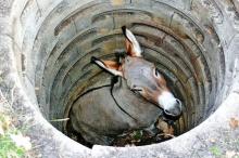 Однажды осел упал в колодец и стал громко вопить, призывая на помощь. На его крики прибежал хозяин ослика и развел руками — ведь вытащить ослика из колодца было невозможно.