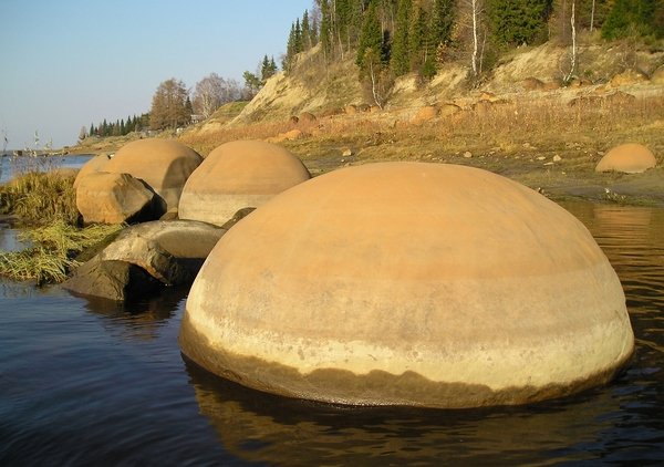 Одни шары словно прикопаны в земле, другие просто стоят на поверхности. Здесь также можно обнаружить немало камней, которые больше похоже на булыжники, – под воздействием ветра, воды и холода они утратили свою идеальную округлость.
