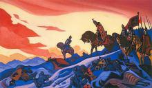 В летописях ПравоСлавных Староверов о «татаро-монгольском иге» сказано однозначно: «Был Федот, да не тот». Обратимся к древлесловенскому языку. Адаптировав рунические образы к современному восприятию, получим: тать — враг, разбойник; могол-могущественный; иго — порядок. Оказывается, что «тати Арии» (с точки зрения паствы христианской) с легкой руки летописцев были названы «Татарии»1, (Есть еще один смысл: «Тата» — отец. Татарин – Тата Арии, т.е. Отцы (Предки или более старшие) Арии) могущественные — монголами, а иго — 300-летний порядок в Державе, прекративший кровопролитную гражданскую войну, вспыхнувшую на почве насильственного крещения Руси — «святомученичеством». Орда — производное от слова Орден, где «Ор» — сила, а день — светлое время суток или просто «светло». Соответственно «Орден» — Сила Света, а «Орда» — Светлые Силы. Так вот эти Светлые Силы Славян и Ариев, во главе с Богами и Предками нашими: Родом, Сварогом, Свентовитом, Перуном пресекли гражданскую войну в России на почве насильственной христианзациии 300 лет сохраняли порядок в Державе. А были ли в Орде чернявые, коренастые, смуглолицые, горбоносые, узкоглазые, кривоногие и очень злые воины? Были. Отряды наёмников разных национальностей, которых, как и в любой другой армии, гнали в первых рядах, сохраняя от потерь на передовой линии основные Славяно-Арийские Войска.