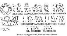 б) словенское народное письмо («берестяное» письмо или черты и резы), - было самым простым письмом и использовалось для передачи кратких сообщений на бытовом уровне: (рис.10)